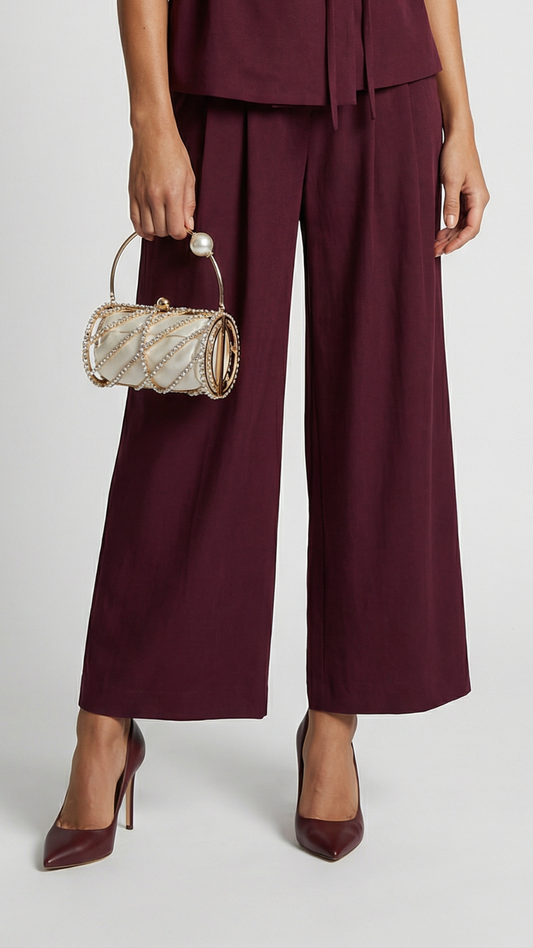 • Burgundy Wide-Leg Tailored Trousers