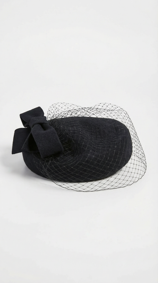 • British Retro Wool Beret with Bow Veil