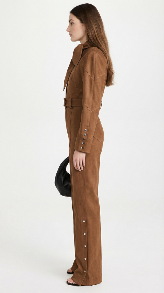 • Chic Umber Two-Piece Coat with Elegant Bow Collar