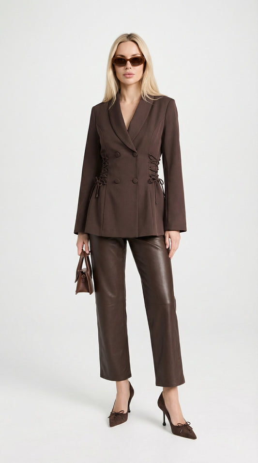 • Coffee Brown Side Lace-Up Blazer