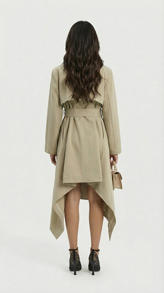 • Double-Belted Long Loose Trench Coat